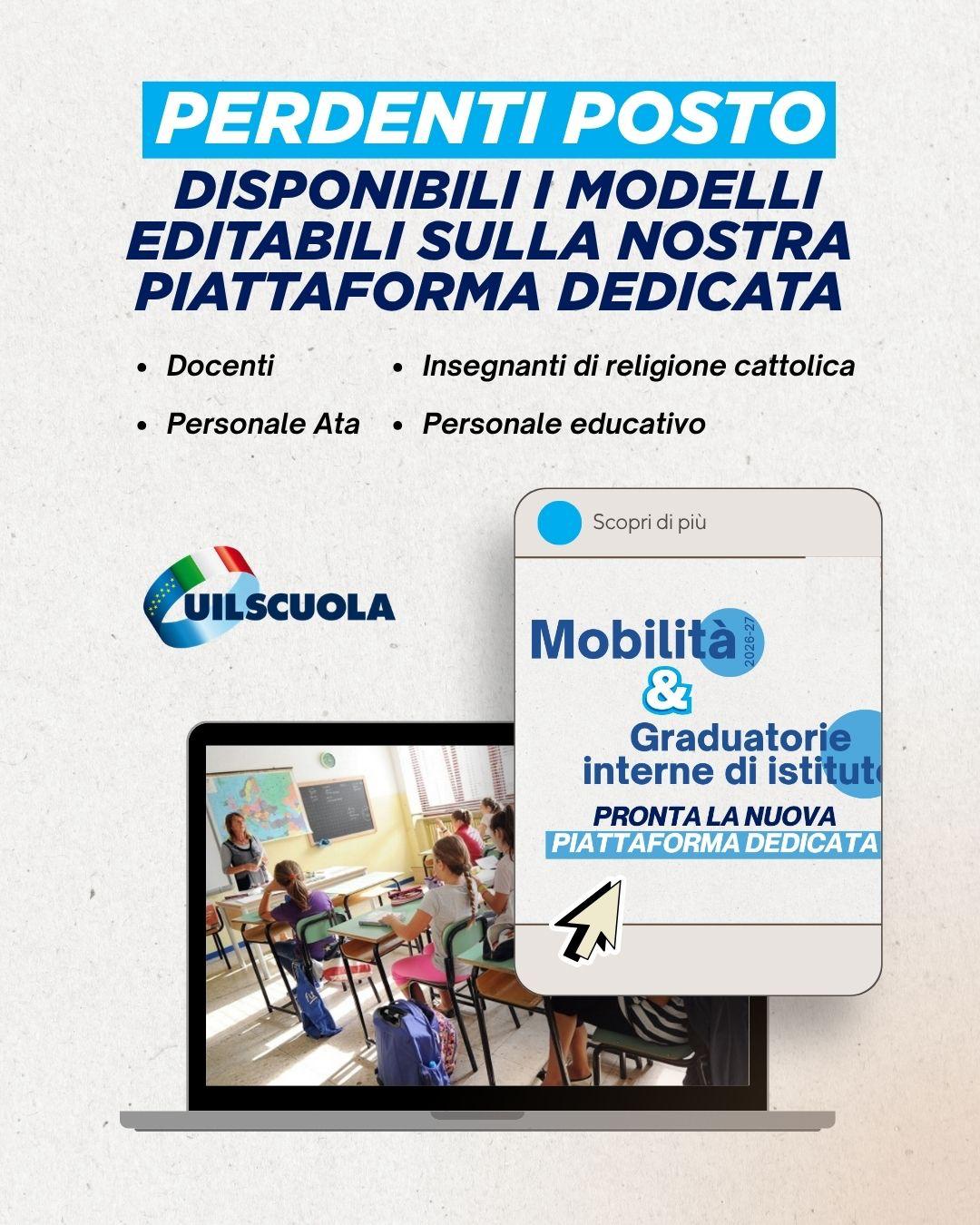 Sulla nostra piattaforma online sono disponibili i modelli in formato editabile per docenti, ATA, personale educativo e IRC dichiarati soprannumerari.